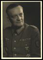 NO IMAGE Probably one of the last wartime photos of Speth. Note the Knights Cross. After a close examination, you will notice that the tunic is an enlisted combat model that has had the dark green collar and the general rank insignia added. |